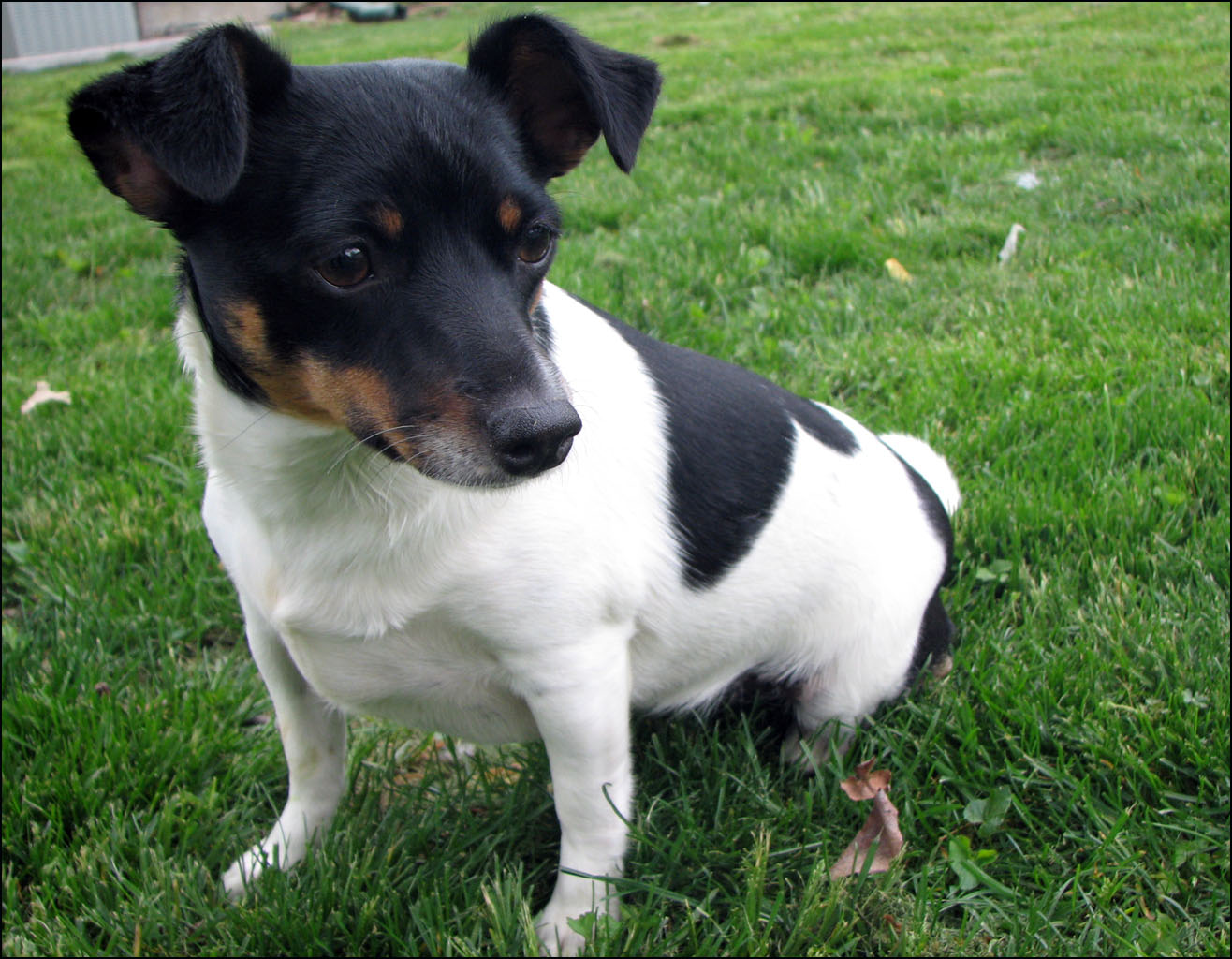 Tempie is the black and white female. She is a Rat Terrier. When we first got her she was the calm one so we named her Temperance which means: