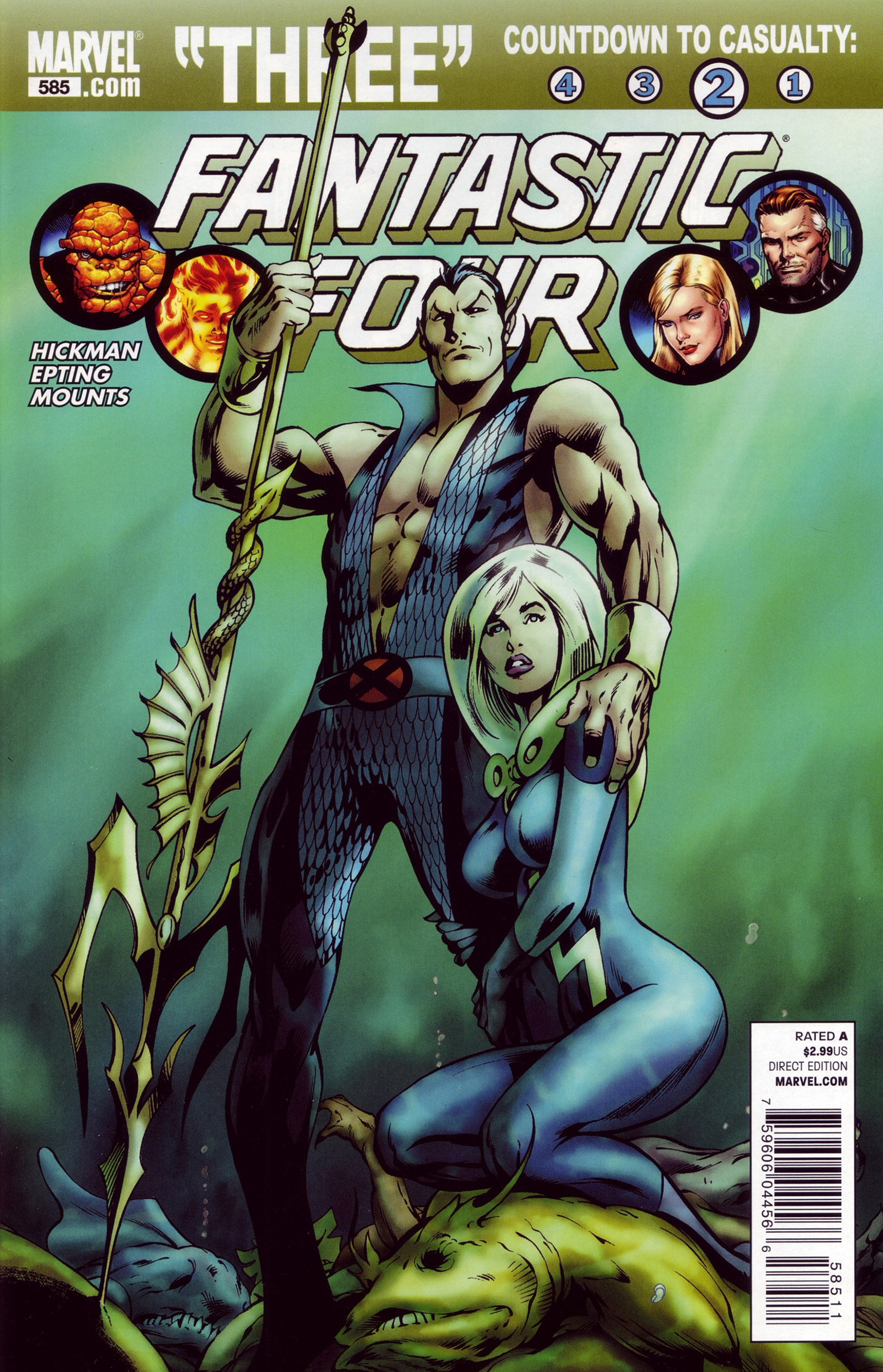 Sunday morning and time for the Sunday Scan. This is the cover for Fantastic Four #585 (2011) – art by Alan Davis with inking by Mark Farmer. Reed’s worst nightmare is Namor’s dream! Long-time fans of the Fantastic Four know that Namor (the Sub-Mariner) has always wanted Susan Richards (the Invisible Woman) and Sue has always had a little “something-something” for Namor.