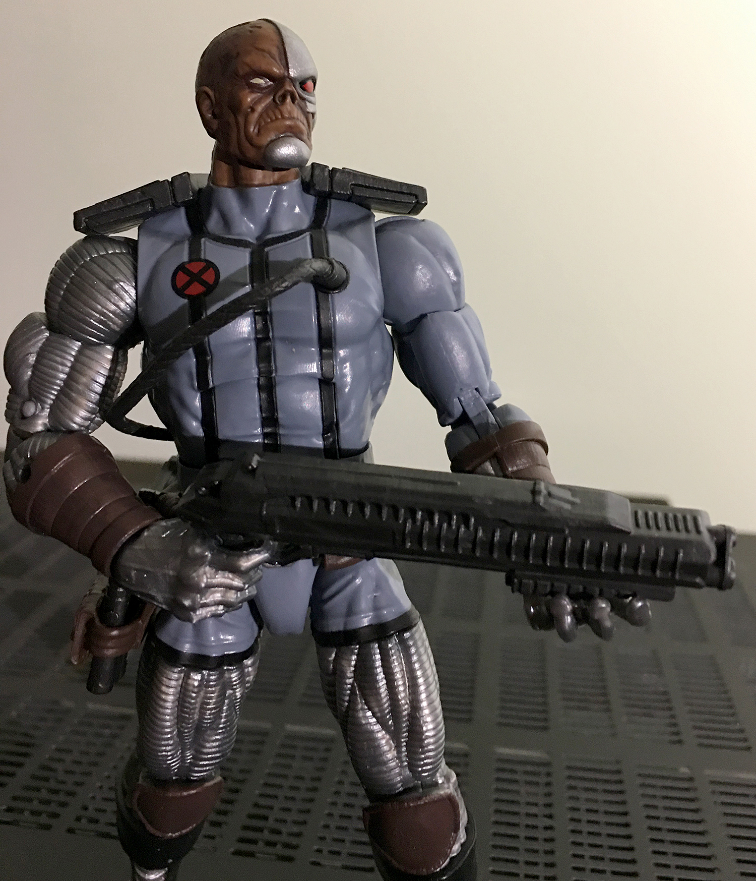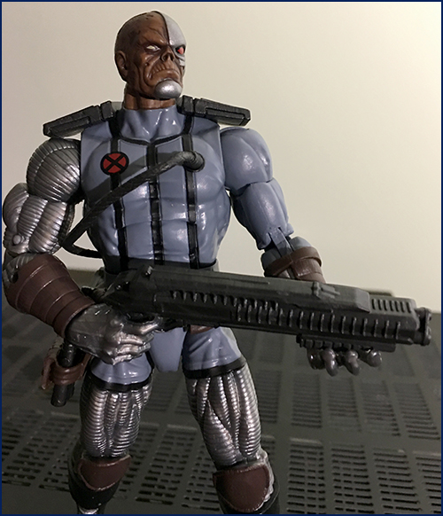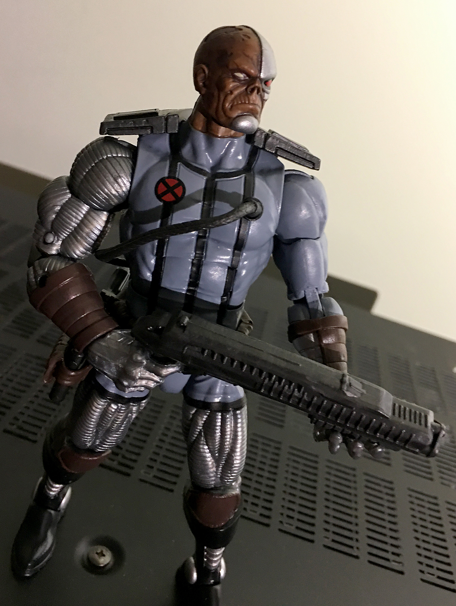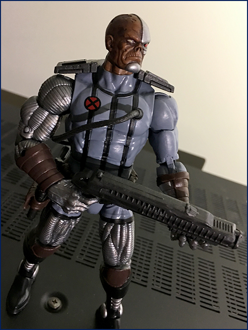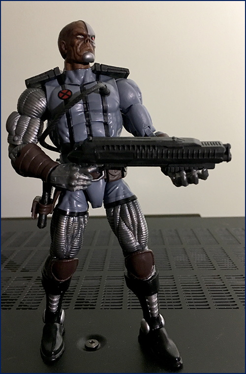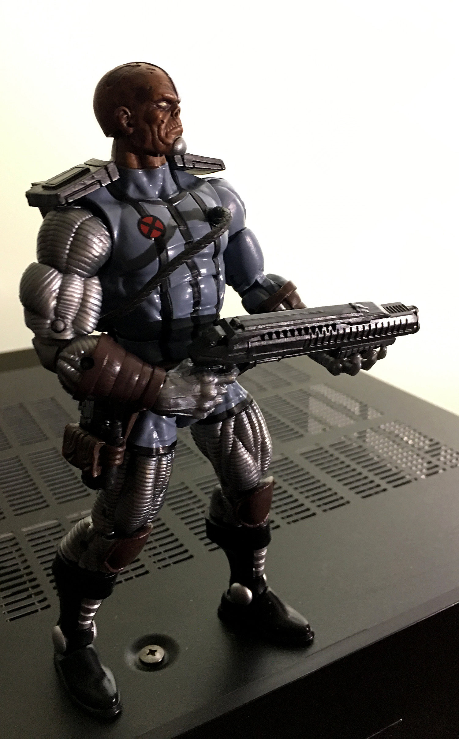 Picked up this great Deathlok action figure at Meijers today. It’s a Marvel Legends Uncanny X-Force series figure with the cool grey/black/brown suit the whole team wore versions of in the Rick Remender run. Really well done figure. Stands well and looks fantastic. Take a look at these shots I got of him standing atop my Yamaha Receiver. Click the thumbnails for high rez versions.