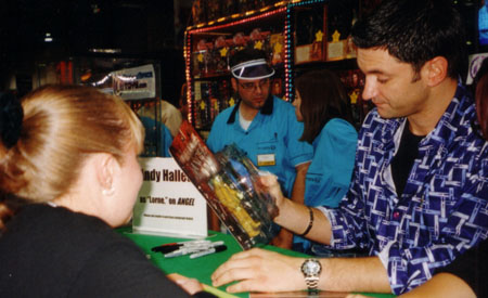 She was really sweet and much prettier in person than on TV (kind of odd I thought). Kristan also got an autographed Lorne action figure and several pictures with actorAndy Hallet. This is another nice guy that knows how to treat his fans. Wizard (and Time and Space Toys) really underestimated this guy’s draw power as his lines were impressively LONG.