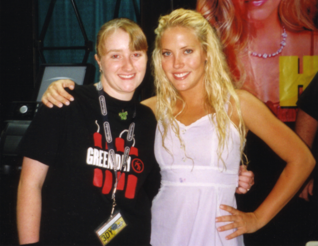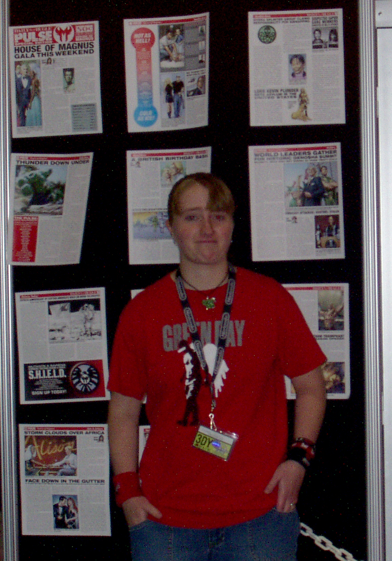 Kristan reluctantly posing in front of a Pulse display on the outside of the Marvel booth: